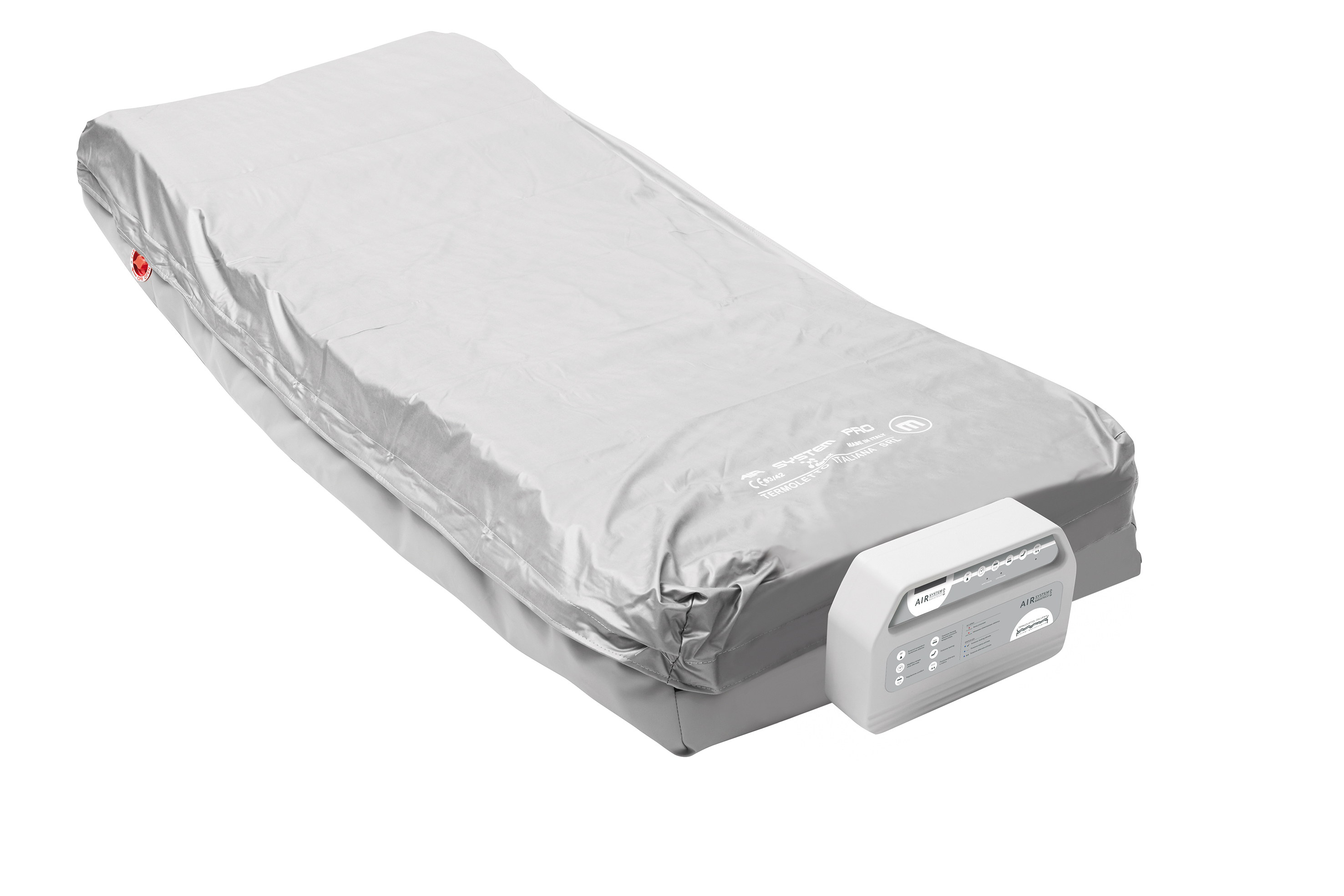 Sistema di supporto attivo per la riduzione della pressione dell’aria, con pressione alternata dinamica e funzionalità statica a bassa pressione continua. Sistema con tre zone differenziate.