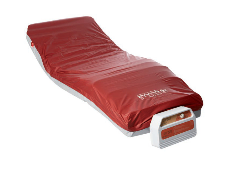Sistema antidecubito ad aria, dotato di funzionalità dinamica a pressione alternata e statica a bassa pressione continua, completamente sostitutivo del materasso ospedaliero.