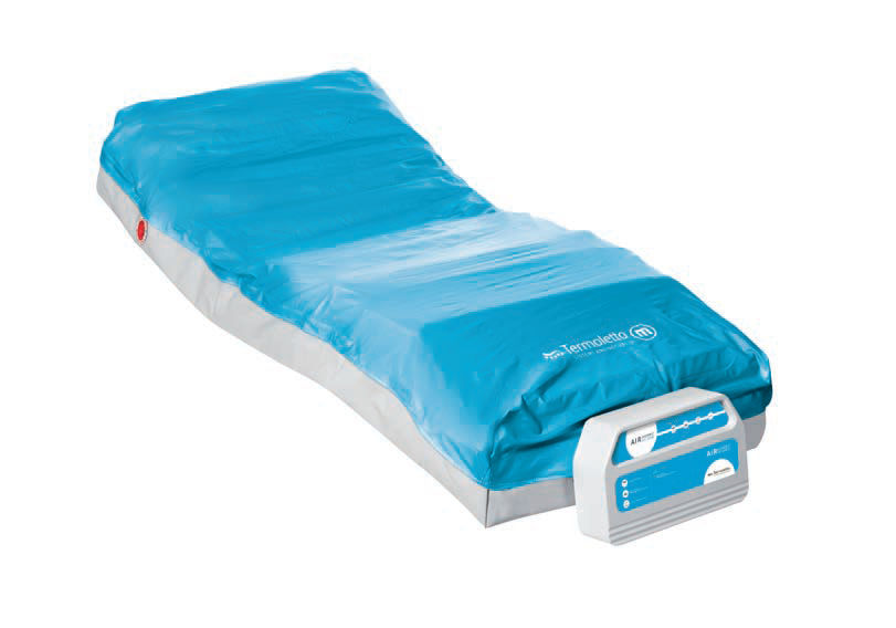 Sistema antidecubito ad aria, dotato di funzionalità dinamica a pressione alternata e statica a bassa pressione continua, completamente sostitutivo del materasso ospedaliero. Sistema a zone differenziate. Superficie con CPR standard. Superficie dotata di base di supporto. Superficie in poliuretano.