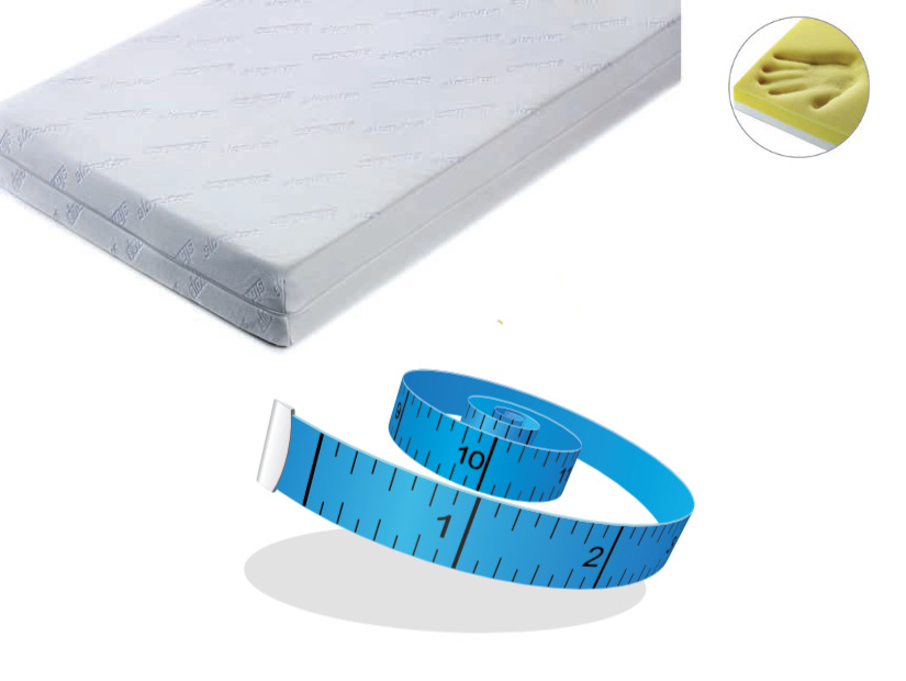 Materasso in poliuretano espanso, realizzato con sistema multistrato a compressione progressiva.