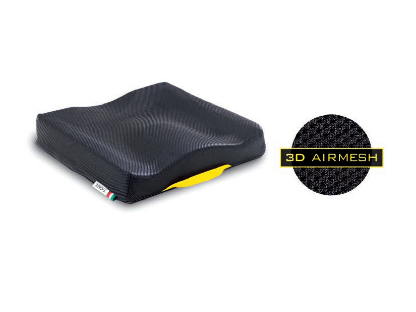 Cuscino in polimero viscoelastico con base anatomicaCover rimovibile in tessuto 3D AIRMESH, traspirante e fondo antiscivolo.
